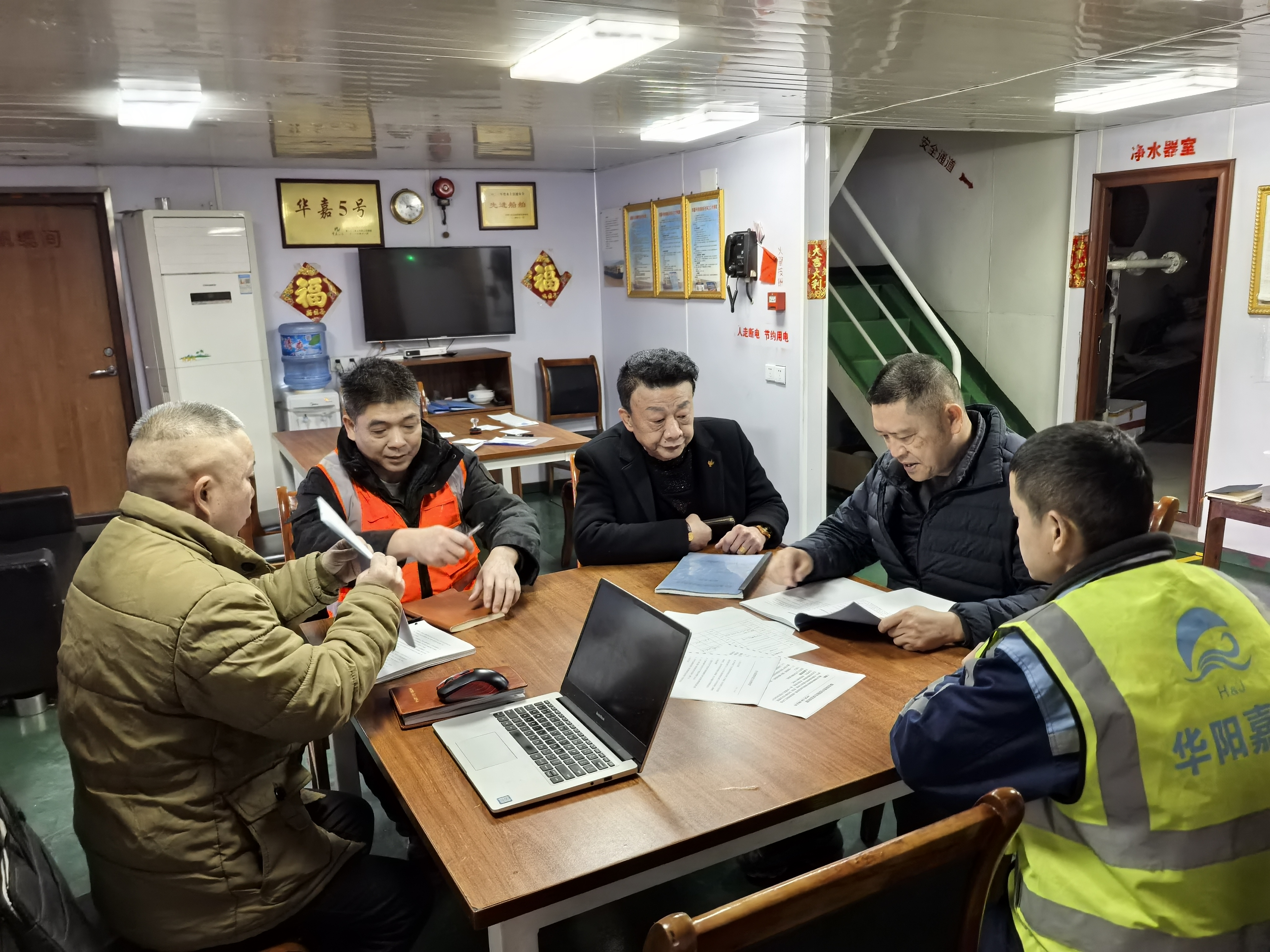 春节将至,为确保节日期间安全生产形势持续稳定,压实安全生产主体责任,1月6日下午,公司总经理庞渝川带领岸基各相关部门,登上正在执行任务的华嘉5号轮,开展春节前安全生产专项检查,并向坚守岗位的一线船员致以关心和问候。
