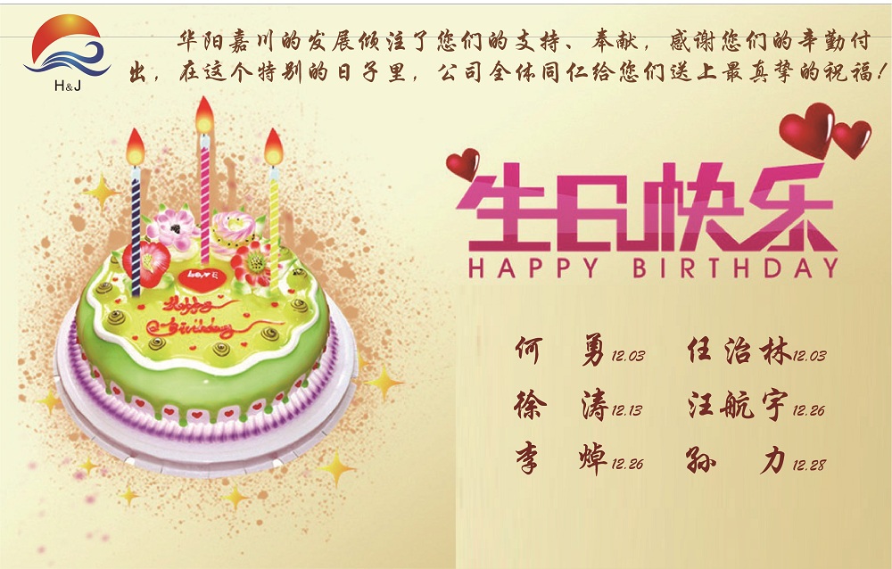 华阳嘉川的发展倾注了您们的支持、奉献,感谢您们的辛勤付出,在这个特别的日子里,公司全体同仁为您们送上最真挚的祝福!