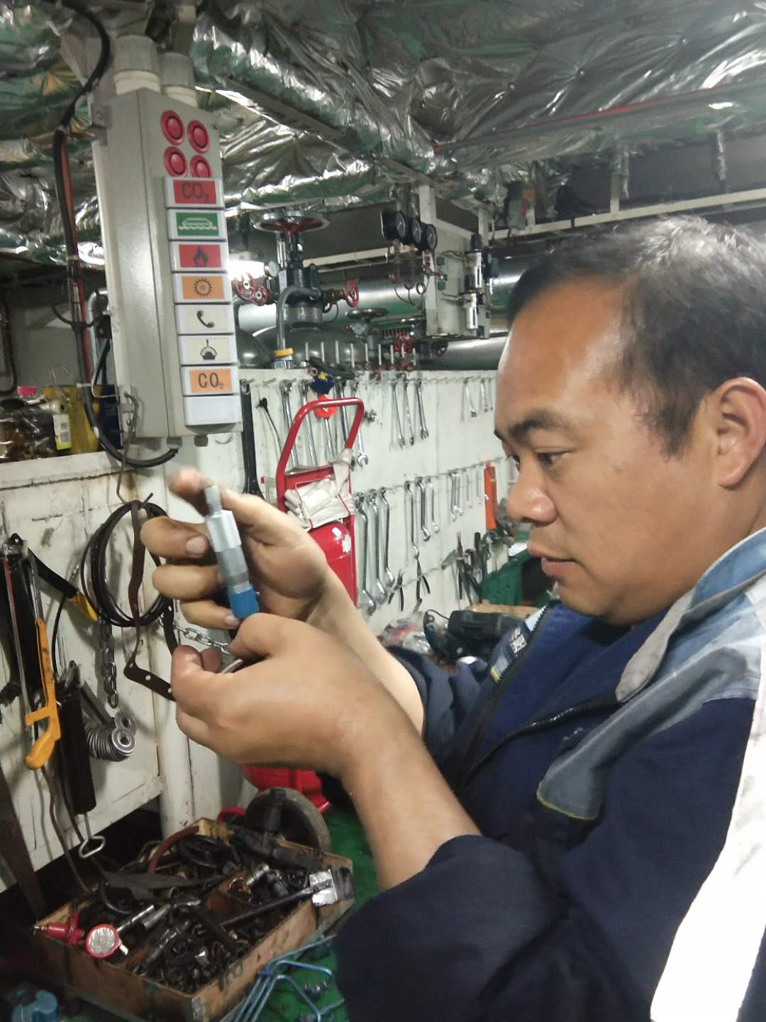 各船在停泊期间对船舶进行了全面的自查自修工作,其中轮机部主要负责船舶主机的拆卸维护,机舱由于空间狭窄,舱内温度较高,但是各船轮机部的员工各自轮机长的带领下,互相协作认真仔细的完成着主机的各项维护工作,最终在规定时间内高质量的完成了维护工作,为后期公司船舶运行提供了坚实的保障。