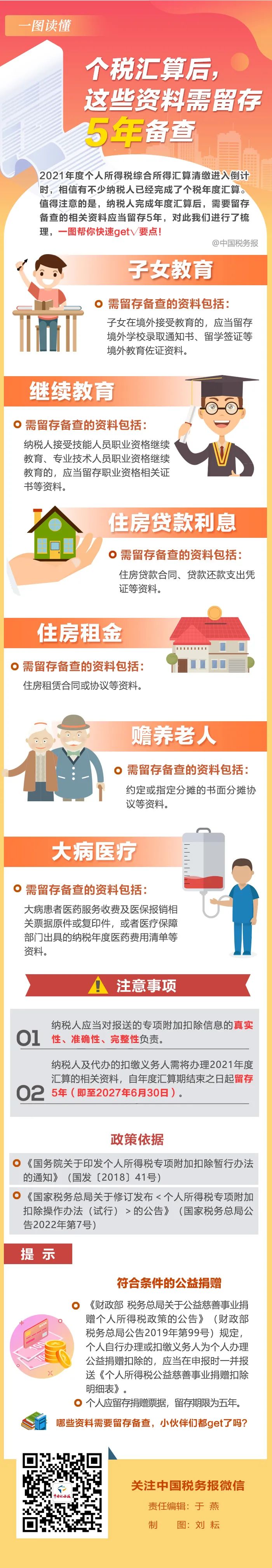 一图读懂!个税汇算后,这些资料需留存5年备查