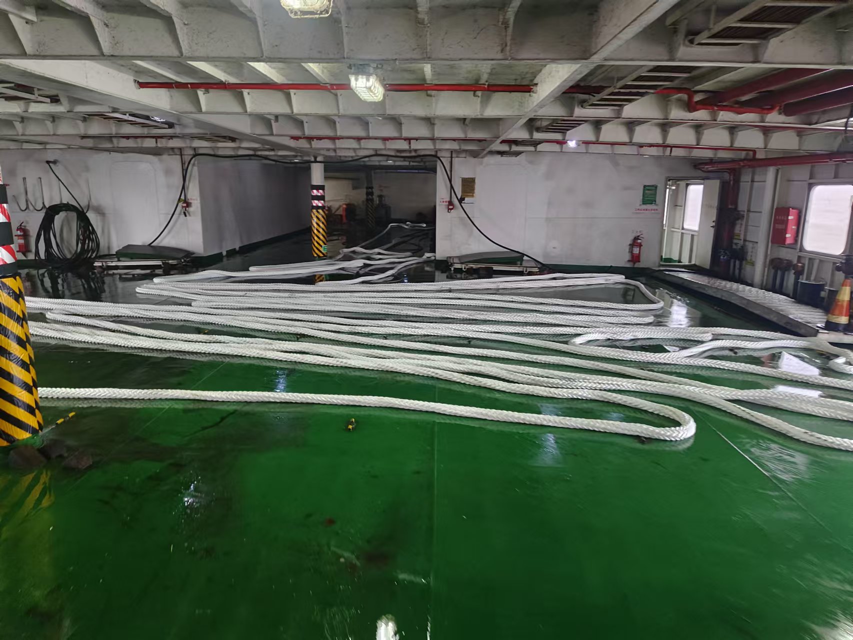 11月1日上午10时,经船舶反应,台风下,现缆绳已处于完全受力状态,恐台风持续强劲后将不能满足强劲台风下的使用要求,公司海务部门收到船舶反馈后,在公司领导的安排下,第一时间联系外部友商、缆绳厂商送缆绳上船,经多方协调,最终在缆绳厂商处采购新缆绳于11日下午14时许成功将缆绳送入船上,并在全体船员的紧密配合下,及时将缆绳拖拽挂入揽桩紧紧系牢,保障了船舶在强劲台风天气下未发生任何海损事故,同时也保障了船员的人身安全。